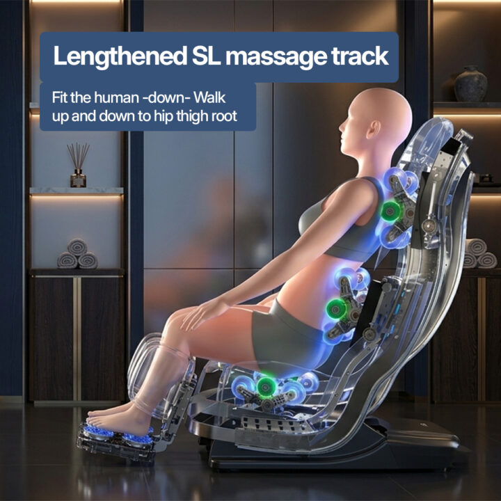 The extended SL-track follows the natural curve of your spine from neck to hips, ensuring consistent, full-length massage coverage and better pressure distribution.