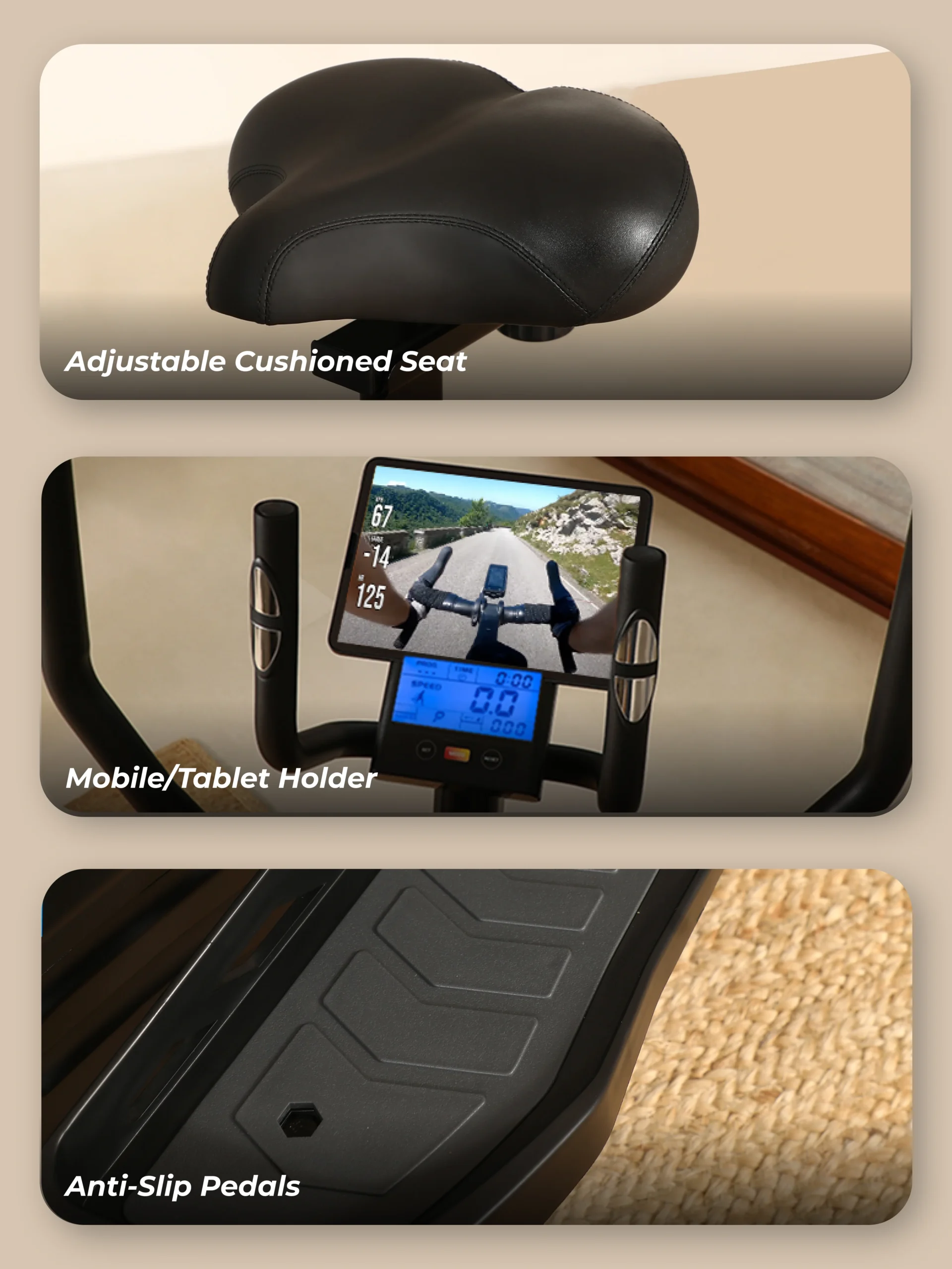 Ergonomic handles and non-slip pedals optimize posture and comfort throughout your workout.